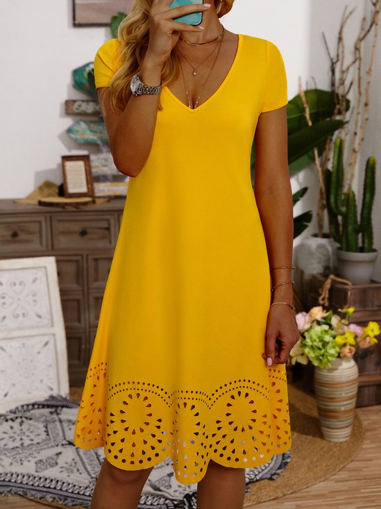 Women Plain V Neck Split Joint T-Shirt Dress Casual Spring/Fall Daily Maxi A-Line Dress