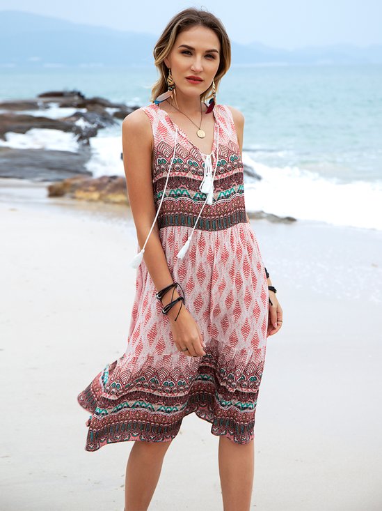 Women's Vintage Casual Resort Ethnic Print Halterneck Slip Dress