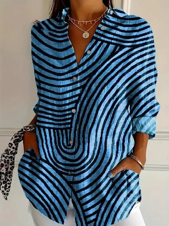 Women Striped Shirt Collar Long Sleeve Casual Daily Spring/Fall Shirt
