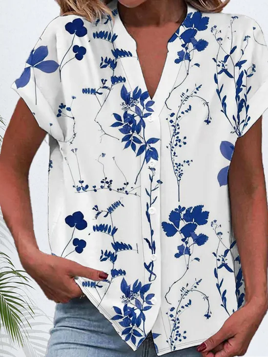 Women's Short Sleeve Shirt Summer White Floral Printing V Neck Daily Going Out Casual Top