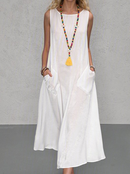 Women's Sleeveless Summer White Plain Split Joint Crew Neck Daily Going Out Casual Maxi A-Line Fit & Flare Dress Dress
