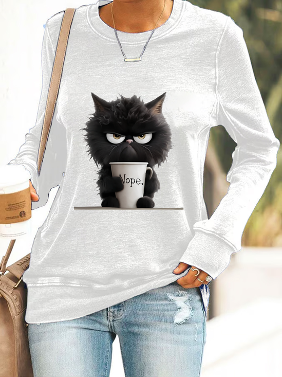 Women Cat Crew Neck Jersey Long Sleeve Casual Daily Spring/Fall T-shirt