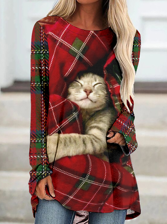 Women's Print Dog Lover Paw Heart Regular Fit Simple Long Sleeve Top