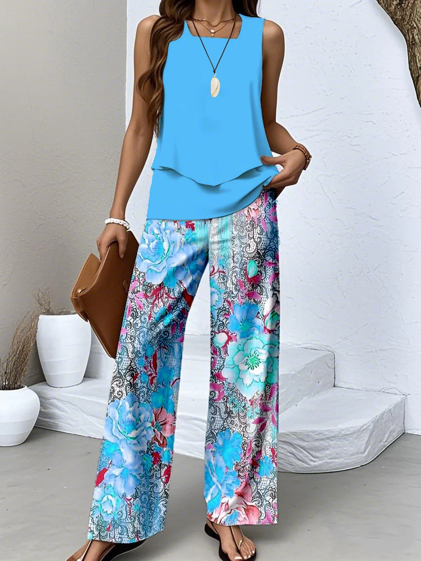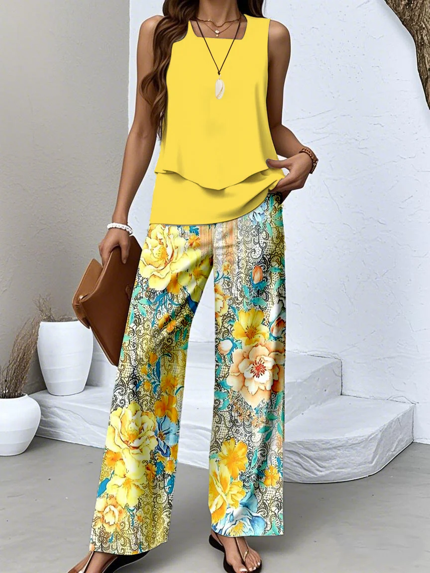 Floral Casual Two-Piece Set With No