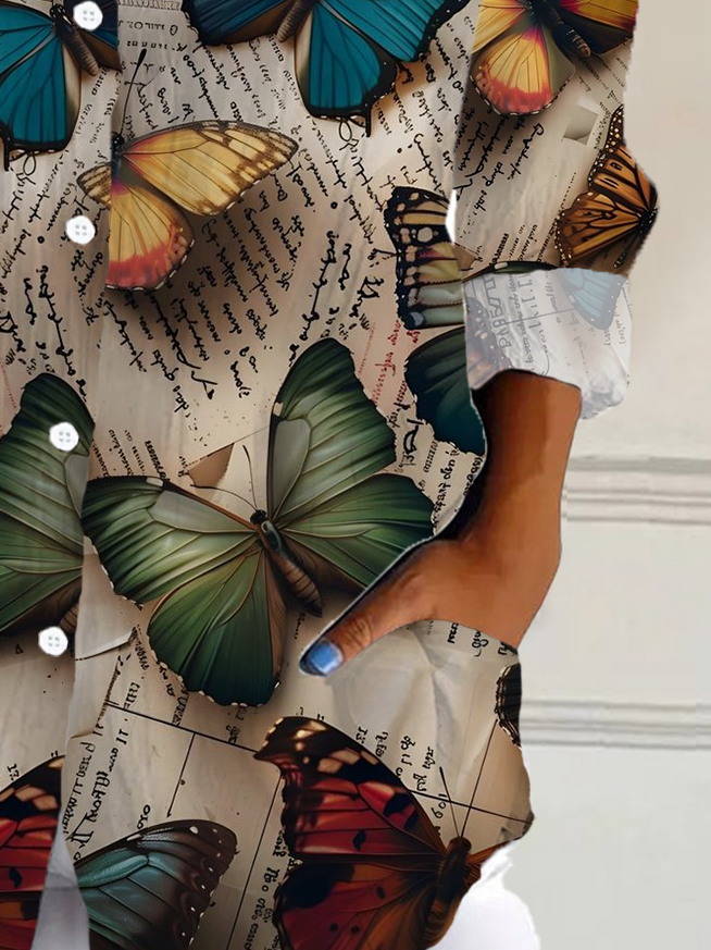 Women's Long Sleeve Shirt Spring/Fall As Picture Butterfly Buckle Shirt Collar Daily Going Out Casual Top