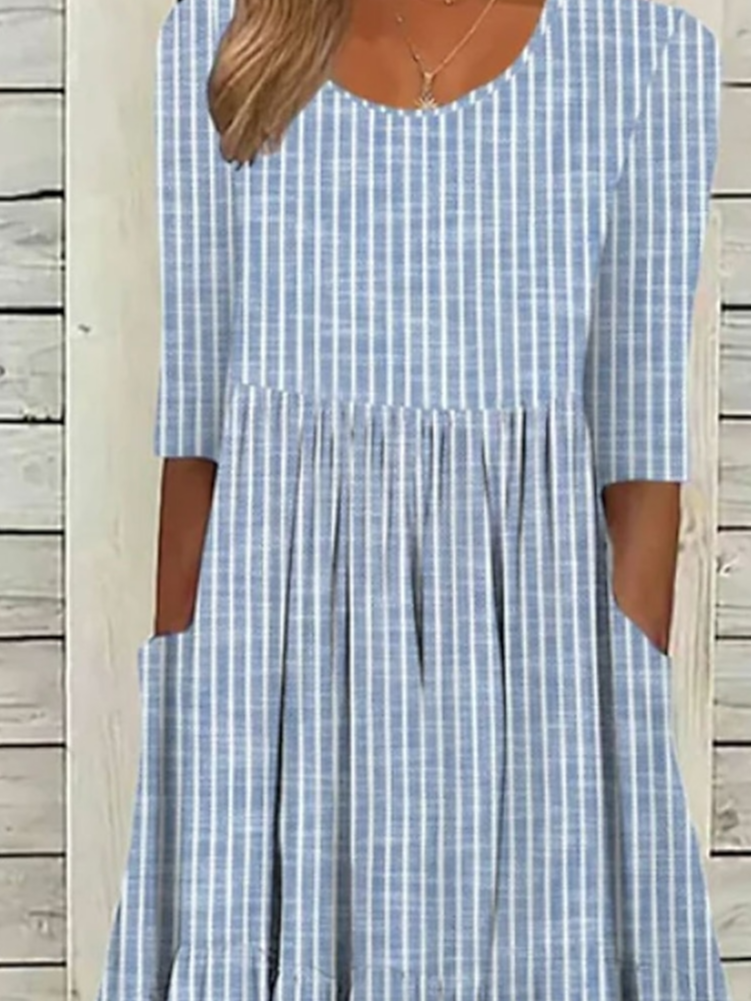 Women's Short Sleeve Summer Blue Striped Printing Crew Neck Daily Going Out Casual Maxi H-Line Shift Dress Dress
