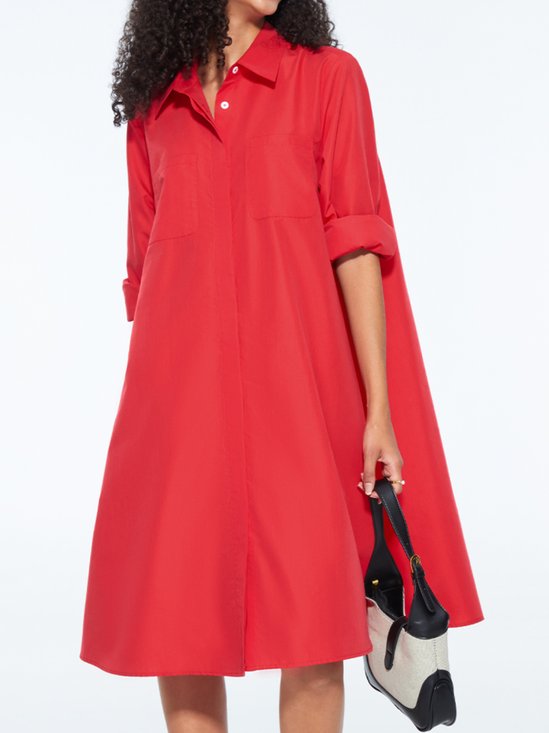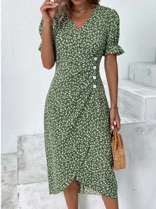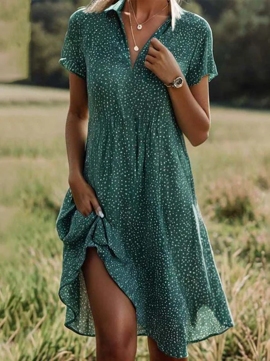 Women's Short Sleeve Summer Polka Dots Sundress Shirt Collar V Neck Going Out Casual A-Line Midi Dress Green Blue Red