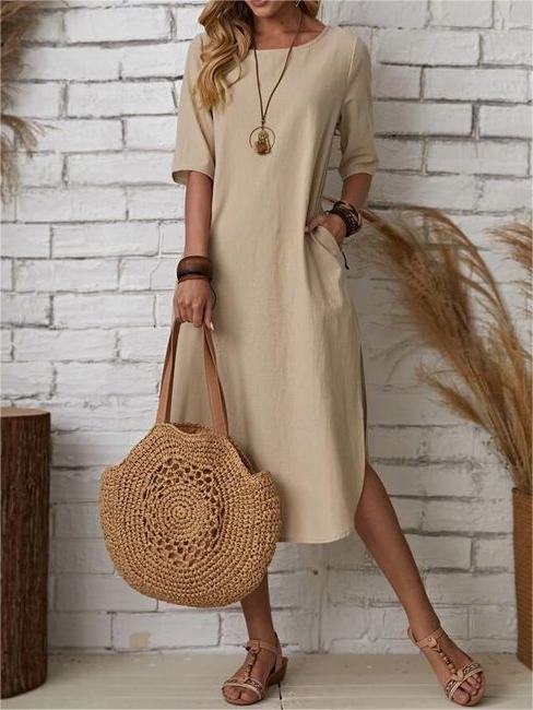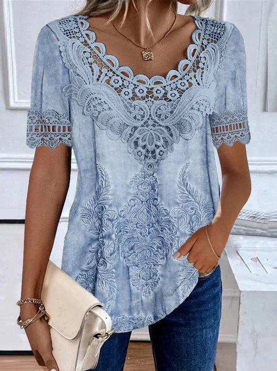 Women's Short Sleeve Shirt Summer Purple Plain Embroidery Cotton Crew Neck Daily Casual Top