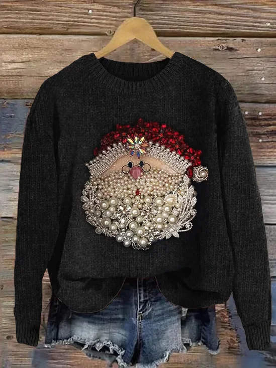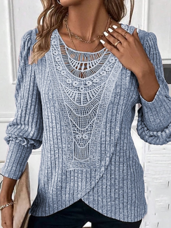 Yarn/Wool Yarn Abstract Casual Crew Neck Sweater