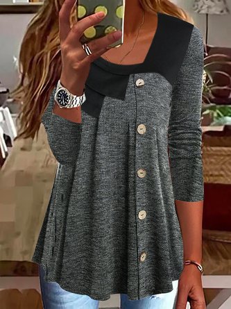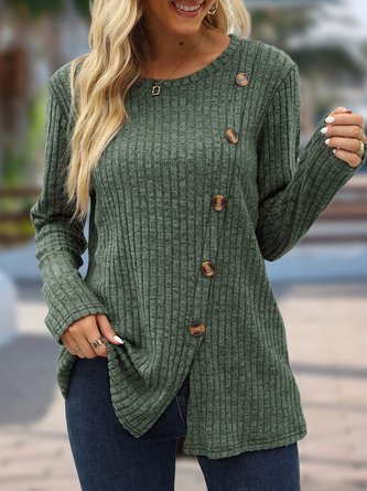 Women Plain Henley Collar Cotton Long Sleeve Casual Daily Spring/Fall Sweater