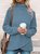 Women Plain Long Sleeve Top With Pants Casual Lace-up Spring/Fall Turtleneck Two-Piece Set