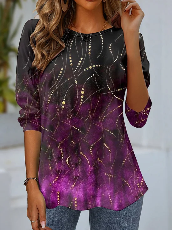 Women's Abstract Spring Print Casual Round Neck Long Sleeve Tunic T-Shirt