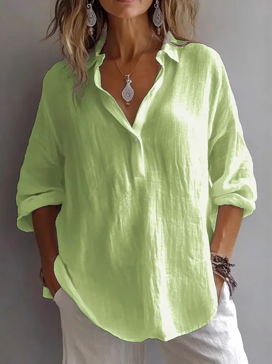 Women Plain Shawl Collar Half Sleeve Casual Daily Summer Shirt