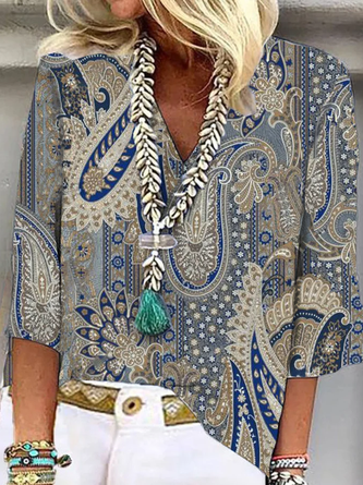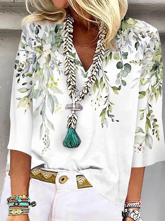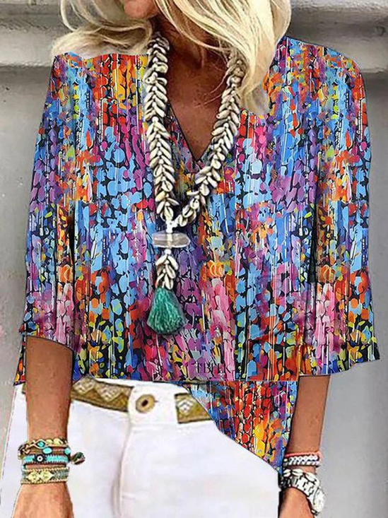 V Neck Casual Gradient Pattern Loose T-Shirt