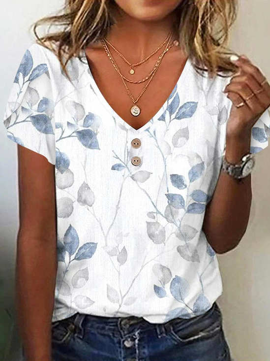 Retro floral art V-neck short sleeved T-shirt
