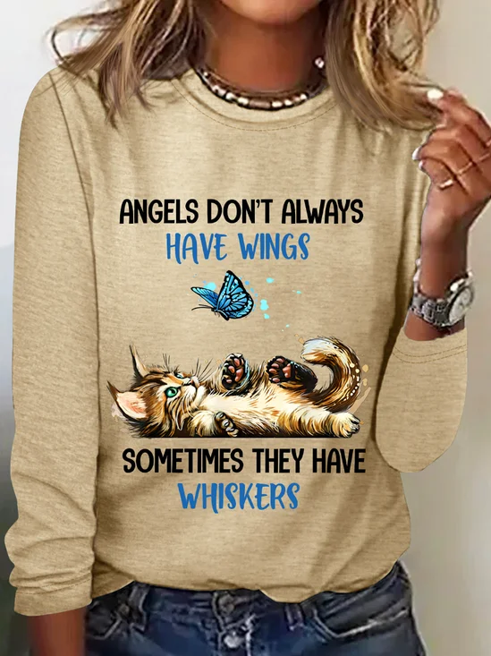 Women Cat Crew Neck Jersey Long Sleeve Casual Daily Spring/Fall T-shirt