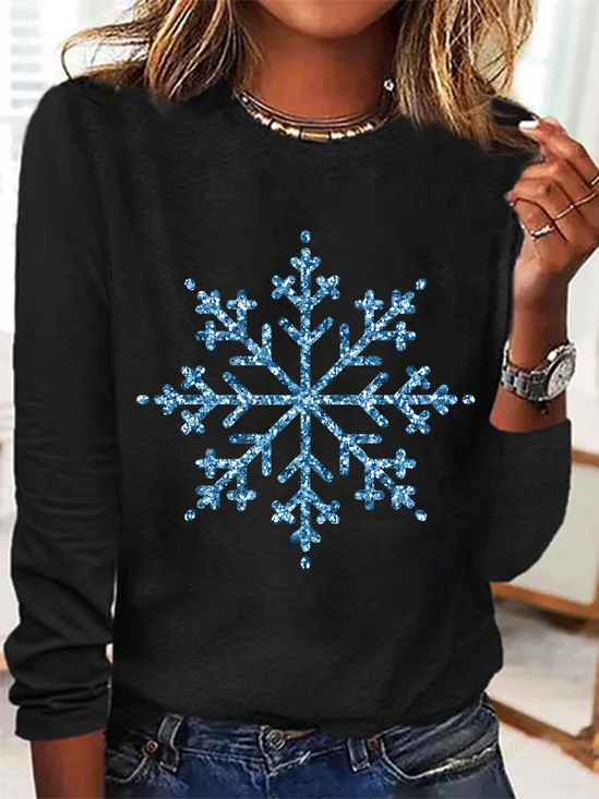 Christmas Snowflake Design Round Neck Casual T-Shirt
