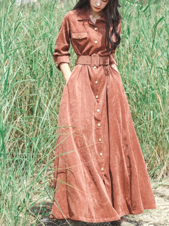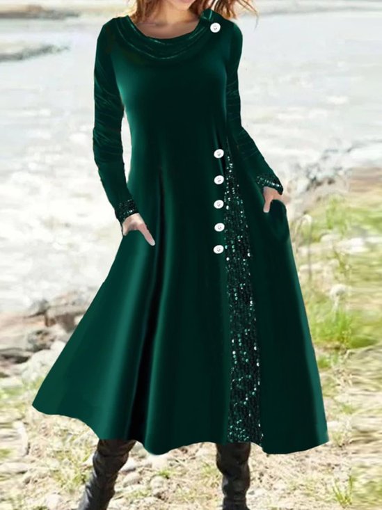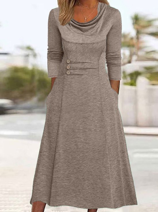 Women Plain Shawl Collar Casual Autumn Daily Maxi H-Line Sweater Dress
