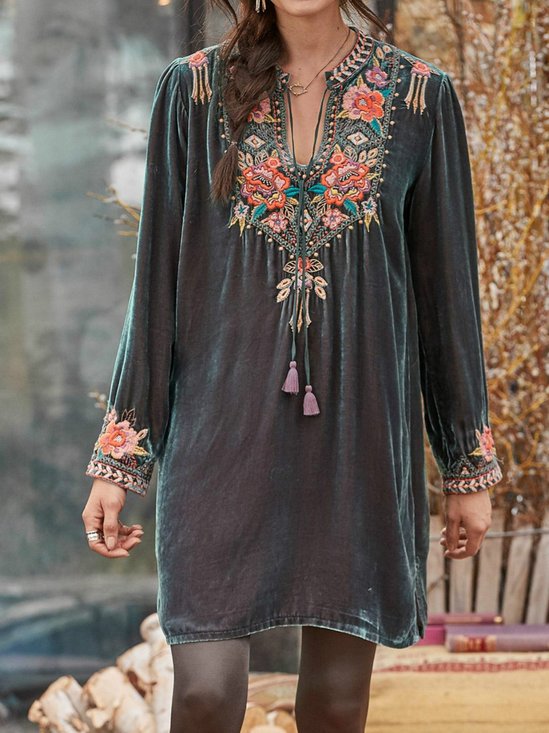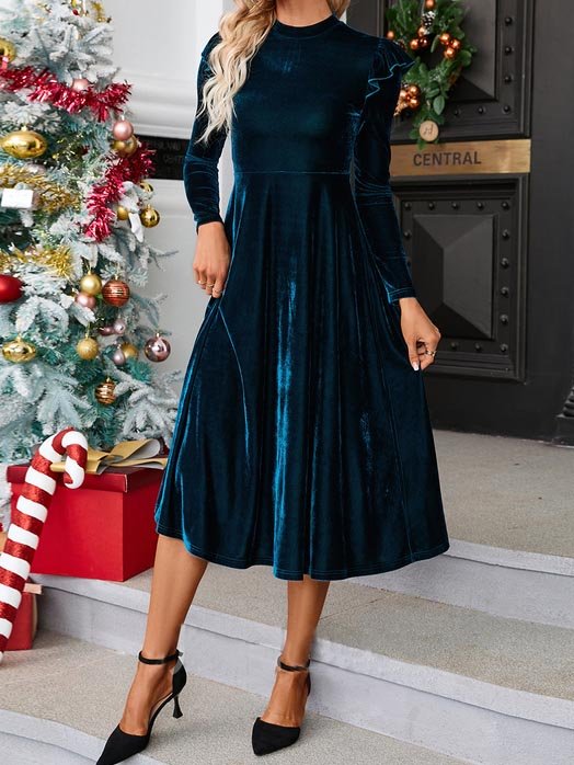 Women Plain Velvet Hoodie Split Joint Fit & Flare Dress Vintage Spring/Fall Daily Mini A-Line Dress