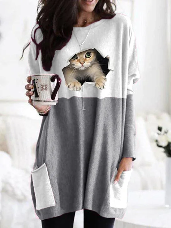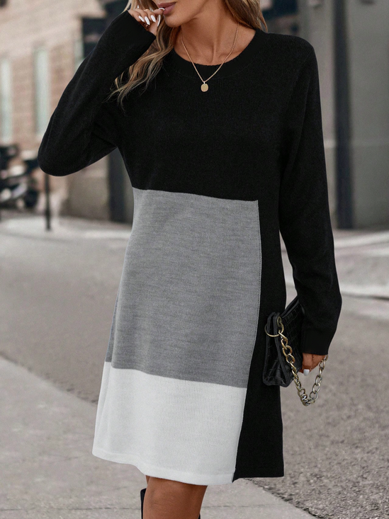Women Multicolor Block Hoodie Casual All Season Daily Midi H-Line Sweashirt Dress