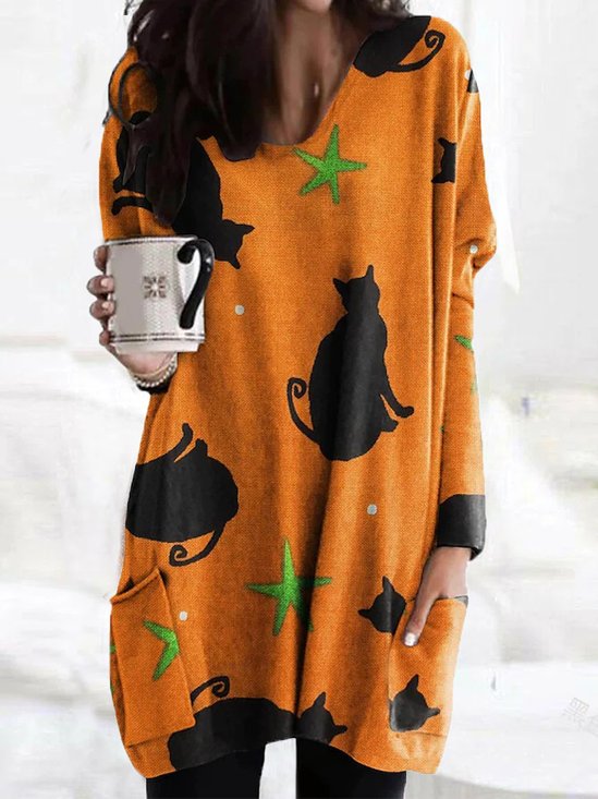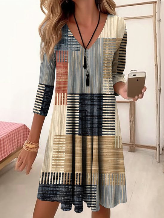 Women Abstract Jersey V Neck T-Shirt Dress Casual Spring/Fall Daily Maxi A-Line Dress
