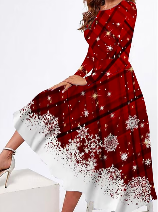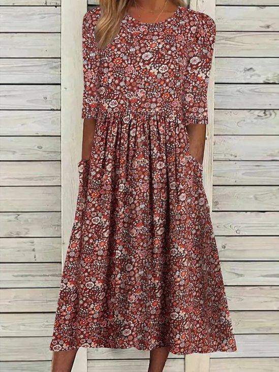 Women Floral Crew Neck T-Shirt Dress Casual Spring/Fall Daily Midi A-Line Dress