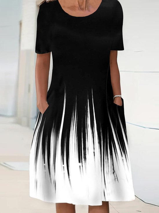 Women Striped Crew Neck Printing Hip Skirt Vintage Spring/Fall Daily Mini A-Line Dress