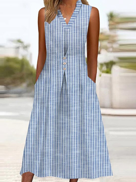 Women's Sleeveless Summer Gray Plain Printing Crew Neck Daily Going Out Casual Maxi H-Line Fit & Flare Dress Dress