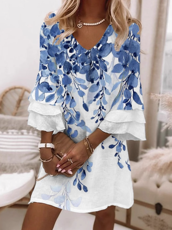 Women's Floral Print Casual V-Neck Short Sleeve Dress
