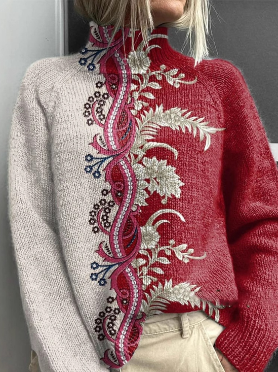 Women Ethnic Crew Neck Long Sleeve Casual Daily Spring/Fall Sweater