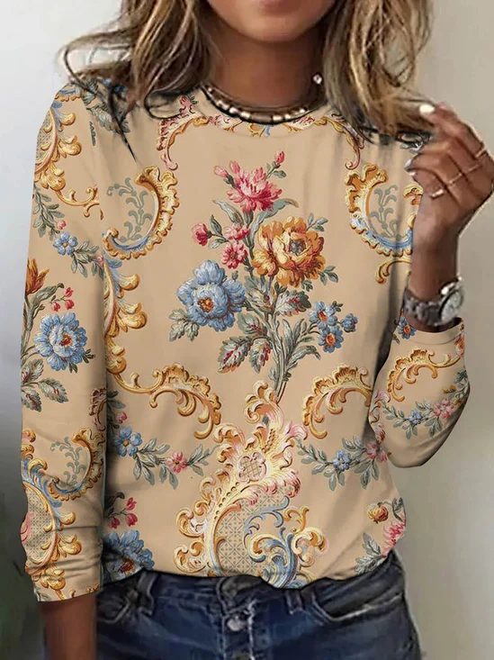 Women Paisley Crew Neck Jersey Long Sleeve Vintage Holiday Spring/Fall T-shirt