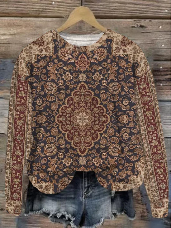 Women Ethnic Crew Neck Long Sleeve Casual Daily Spring/Fall Sweatshirt