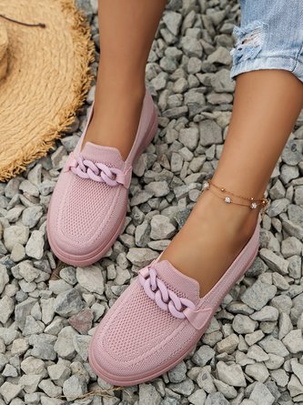 Ladies New Style Metal Chain Flat Thick Sole Casual Loafers Flat Shoes