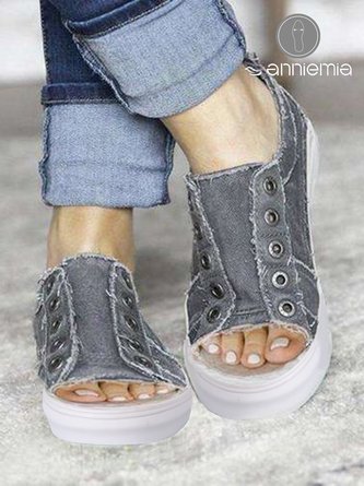 All Season Wedge Heel Plain Mesh Fabric Shallow Shoes