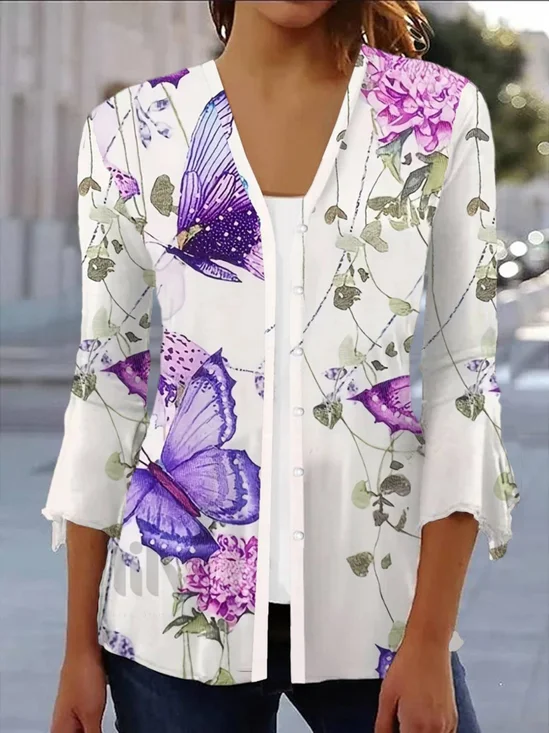 Women Floral V Neck Long Sleeve Casual Daily Spring/Fall Cardigan