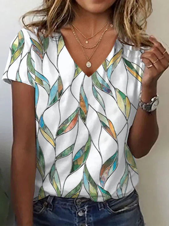 Women Floral V Neck Three Quarter Sleeve Casual Daily Spring/Fall T-shirt