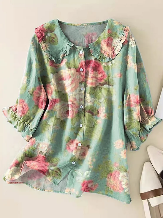 Women Floral Shirt Collar Three Quarter Sleeve Casual Daily Spring/Fall Shirt