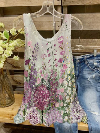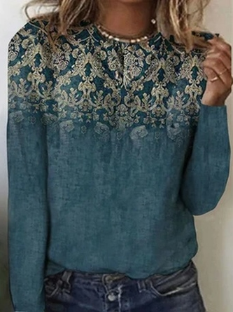 Women Floral Crew Neck Cotton Long Sleeve Vintage Daily Spring/Fall T-shirt