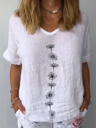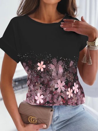 Women Floral Crew Neck Cotton Short Sleeve Casual Daily Summer T-shirt