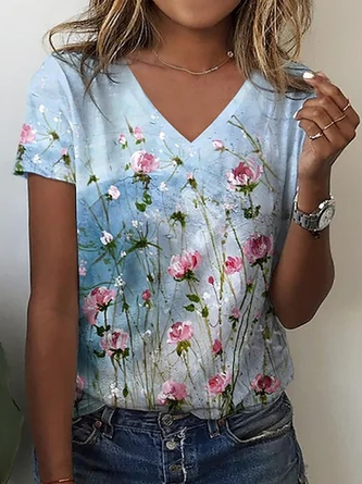 Women Floral V Neck Long Sleeve Casual Daily Spring/Fall T-shirt