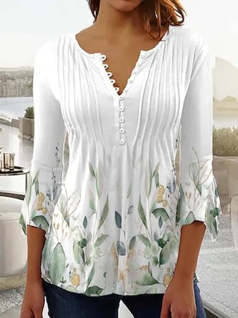 Women Floral Shirt Collar Three Quarter Sleeve Casual Daily Spring/Fall Shirt