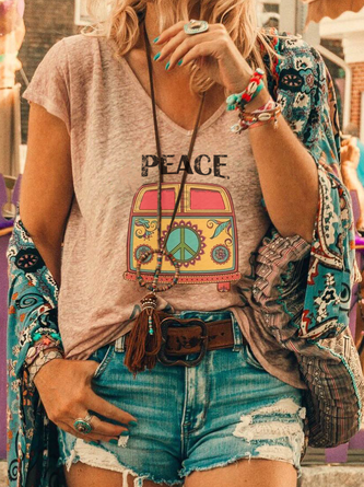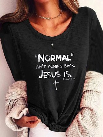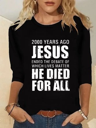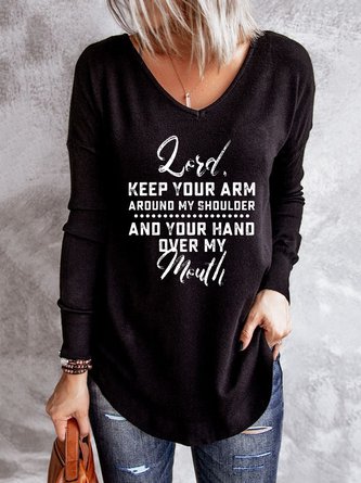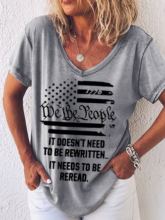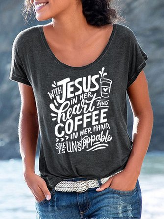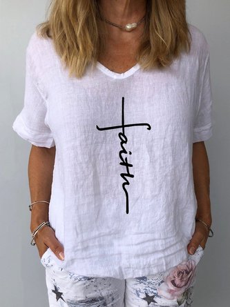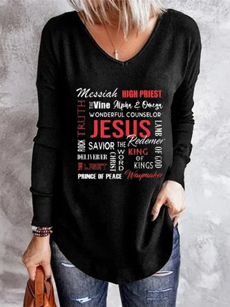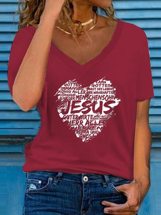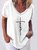 He Is Risen Easter Graphic Short Sleeve V-Neck Loose Tee