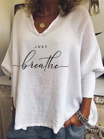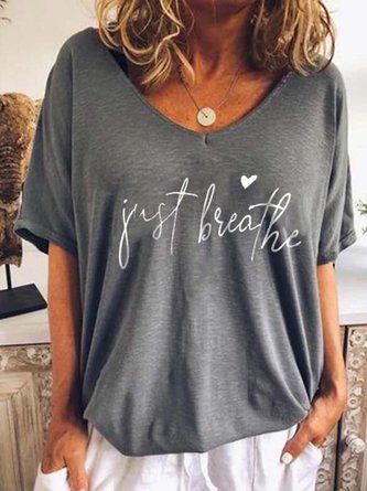 Just Breathe Regular Fit Letter Casual Short Sleeve T-Shirt