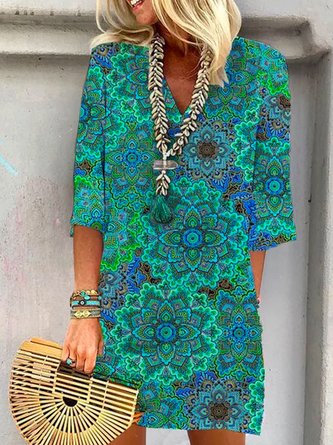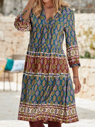 Women's Casual Vintage Paisley Print Round Neck Long Sleeve Dress