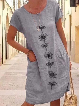 Women's Casual Paisley Print Round Neck Long Sleeve Dress