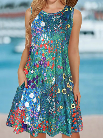 Women's Mini Dress Strappy Dress Vintage Floral Dress