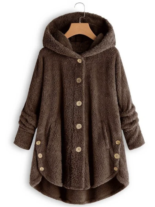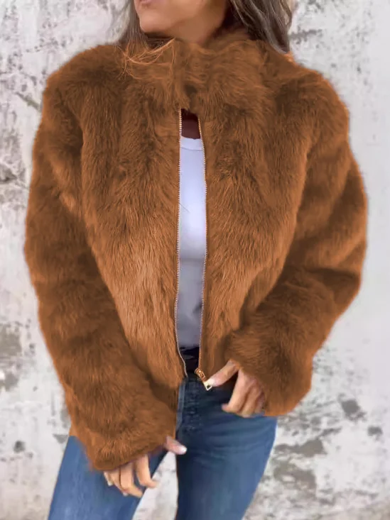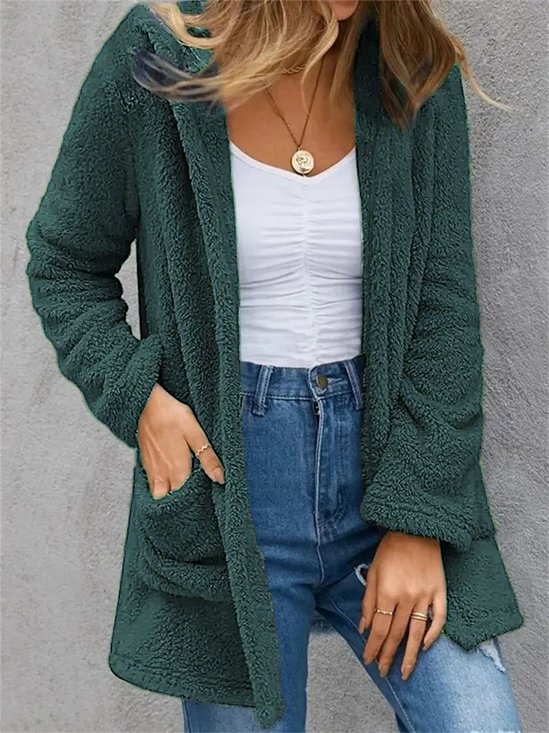 Women Plain Long Sleeve Casual Winter Daily Teddy Jacket Outerwear