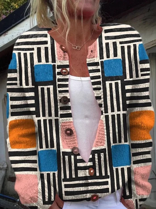 Women's Striped Print Casual Button Long Sleeve Cardigan