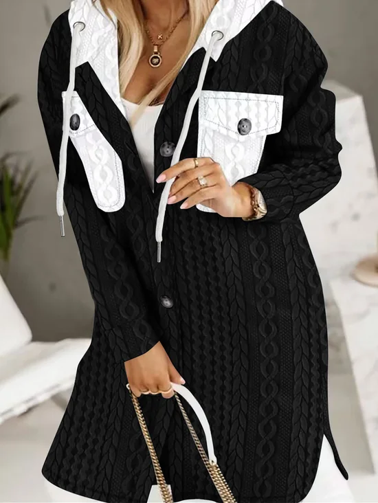Women Plain Shawl Collar Flannel Jacket Long Sleeve Casual Jacquard Winter Daily Coat Outerwear
