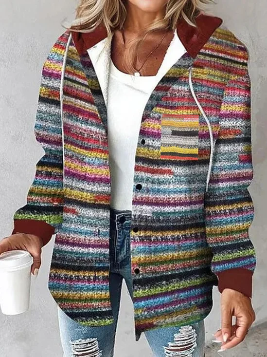 Women Geometric Flannel Long Sleeve Vintage Winter Daily Teddy Jacket Outerwear